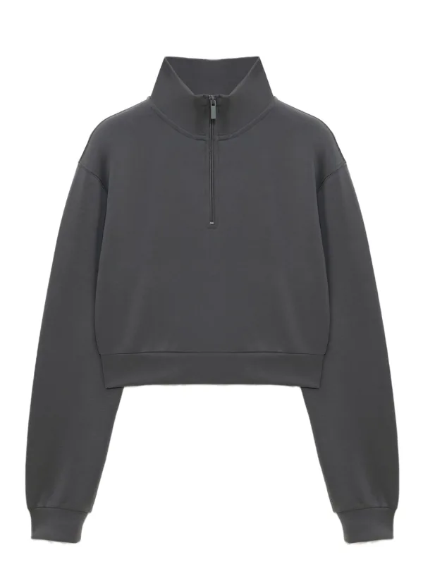 Design: Geribd ceintuurtje; Type sluiting: Ritssluiting; Materiaal: Sweatstof; Halstype: Schipperskraag; Motief: Effen; Extra's: Op staal naden; Pasvorm: Normale pasvorm; Armlengte: Lange mouw; Lengte: Korte pasvorm