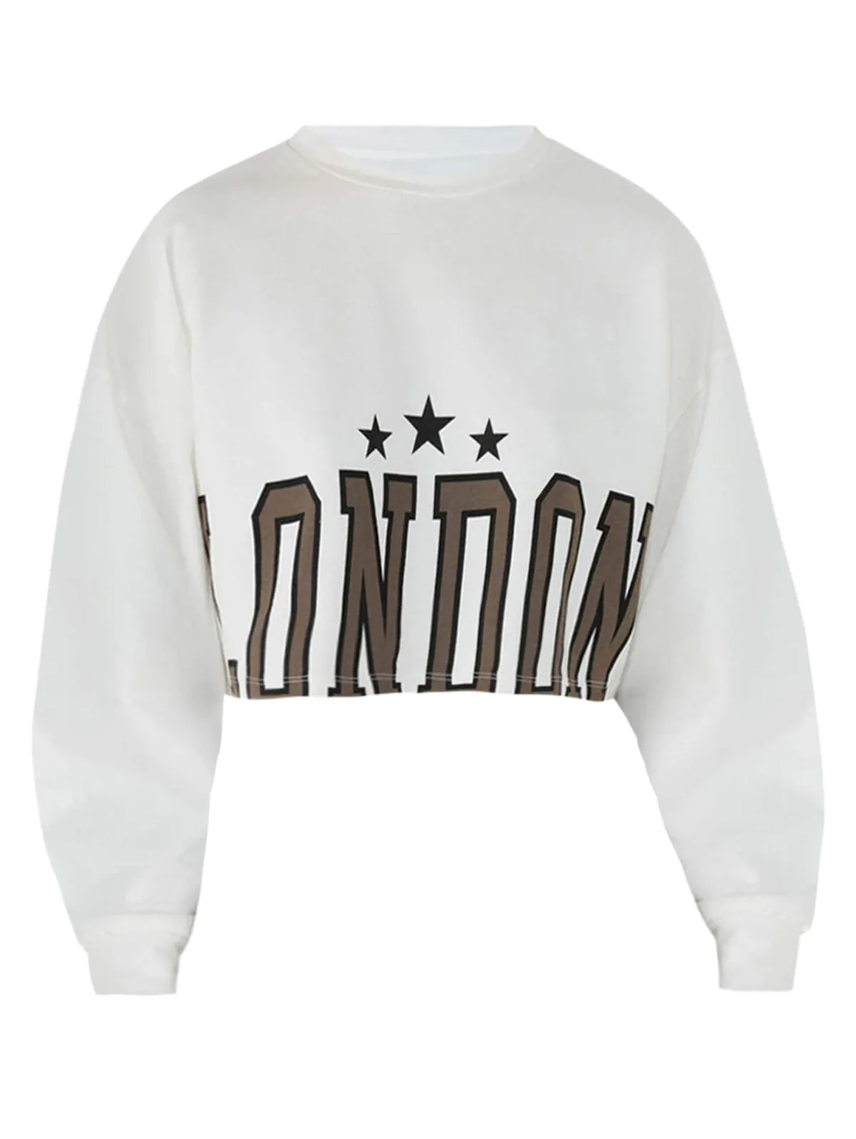 Design: Geribbelde kraag, Overcut schouder; Materiaal: Sweatstof; Halstype: Ronde hals; Motief: Tekst print; Extra's: Op staal naden; Pasvorm: Normale pasvorm; Armlengte: Lange mouw; Lengte: Korte pasvorm