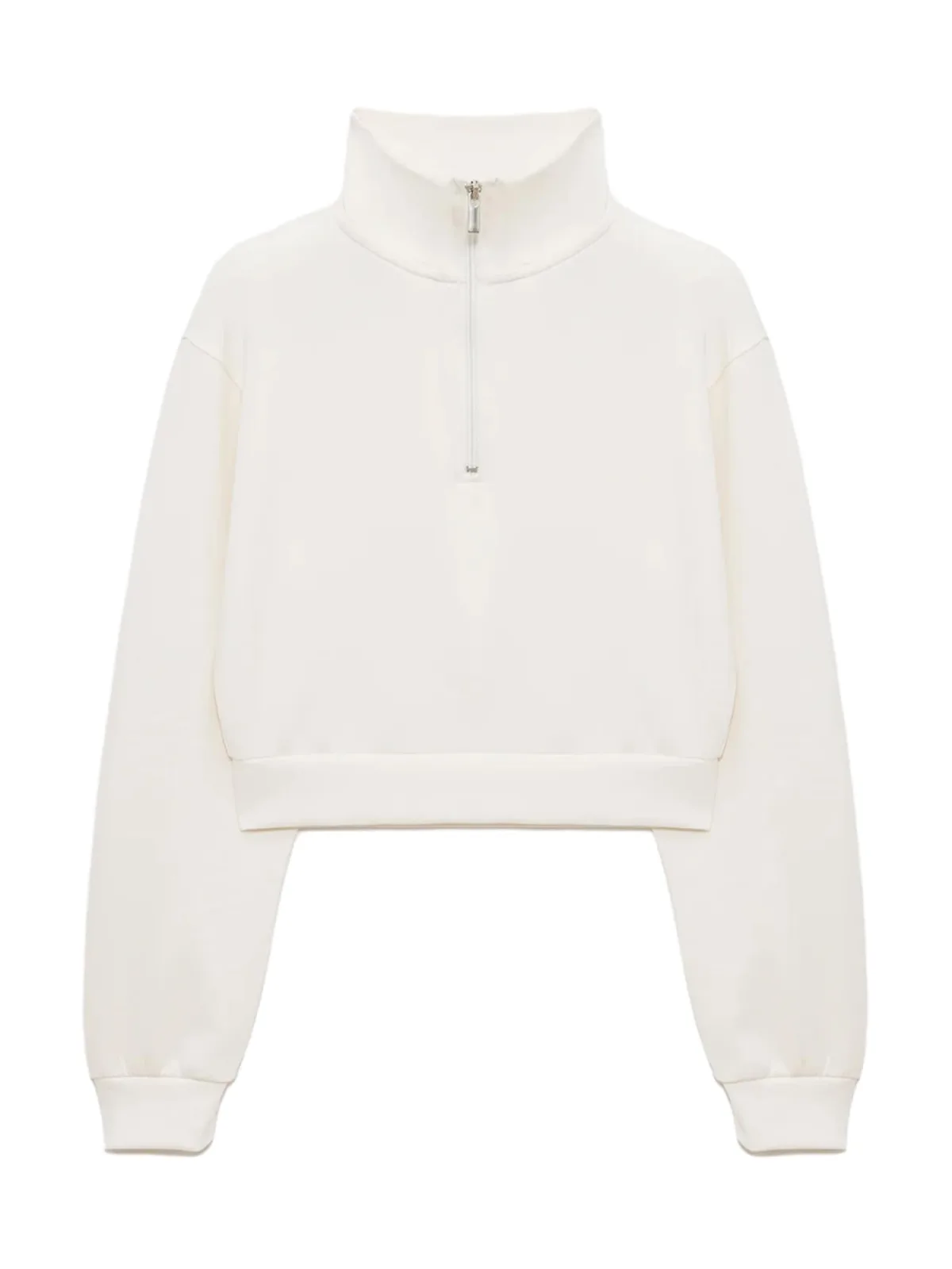 Design: Halve rits; Type sluiting: Ritssluiting; Materiaal: Sweatstof; Halstype: Schipperskraag; Motief: Effen; Extra's: Voelt zacht aan; Pasvorm: Normale pasvorm; Armlengte: Lange mouw; Lengte: Korte pasvorm