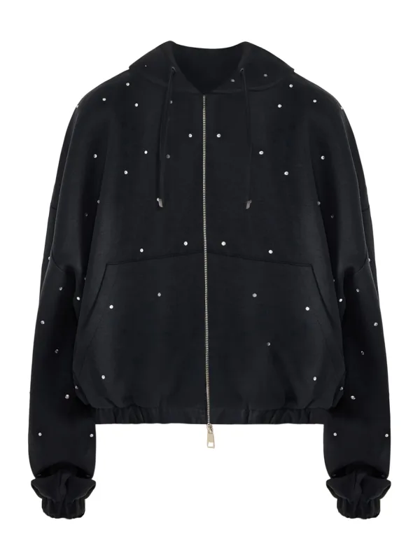 Design: Ritssluiting, Extra lange mouwen, Met capuchon, Kangaroo zak; Materiaal: Sweatstof; Details: Sierstenen; Extra's: All-over patroon; Pasvorm: Normale pasvorm; Armlengte: Lange mouw; Lengte: Normale lengte