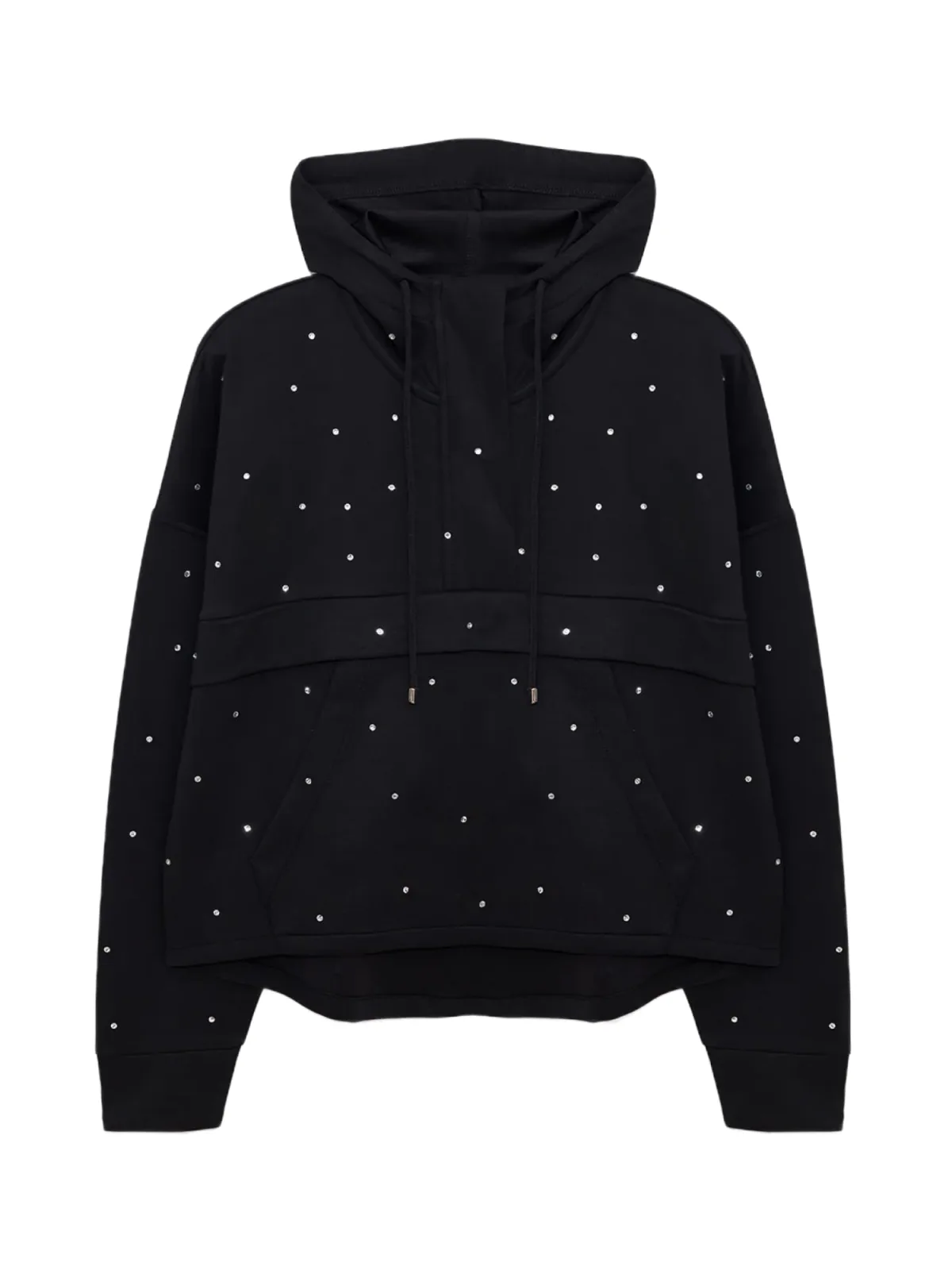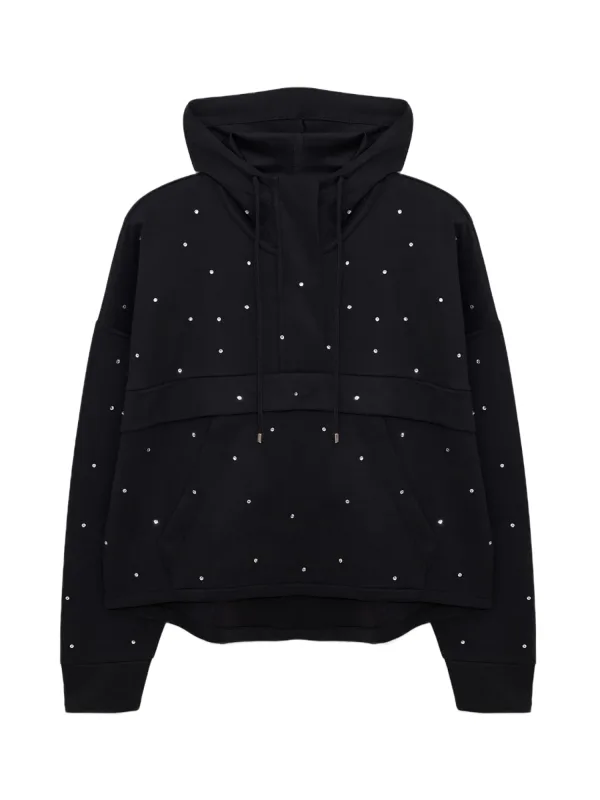 Design: Capuchon met trekkoord, Overcut schouder, Verborgen rits, Verlengd rugpand, Halve rits; Type sluiting: Ritssluiting; Materiaal: Sweatstof; Halstype: Capuchon; Motief: Effen; Details: Sierstenen; Extra's: Op staal naden, Voelt zacht aan; Pasvorm: Losse pasvorm; Armlengte: Lange mouw; Lengte: Normale lengte