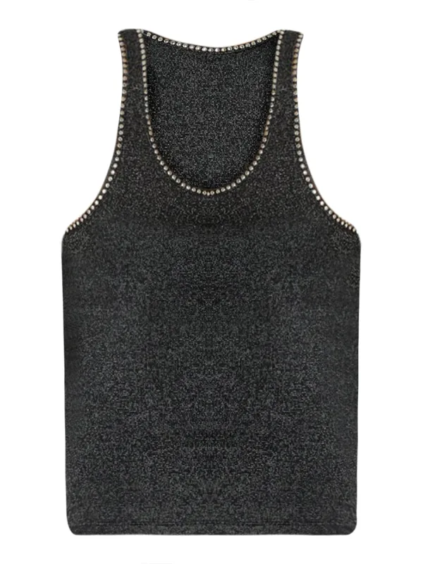 Design: Gevoerde zoom/rand, Rechte zoom; Materiaal: Jersey; Halstype: Ronde hals; Motief: Mélange; Soort bandjes: Racerback; Details: Sierstenen; Extra's: Op staal naden, Voelt zacht aan; Pasvorm: Slanke pasvorm; Armlengte: Mouwloos; Lengte: Normale lengte