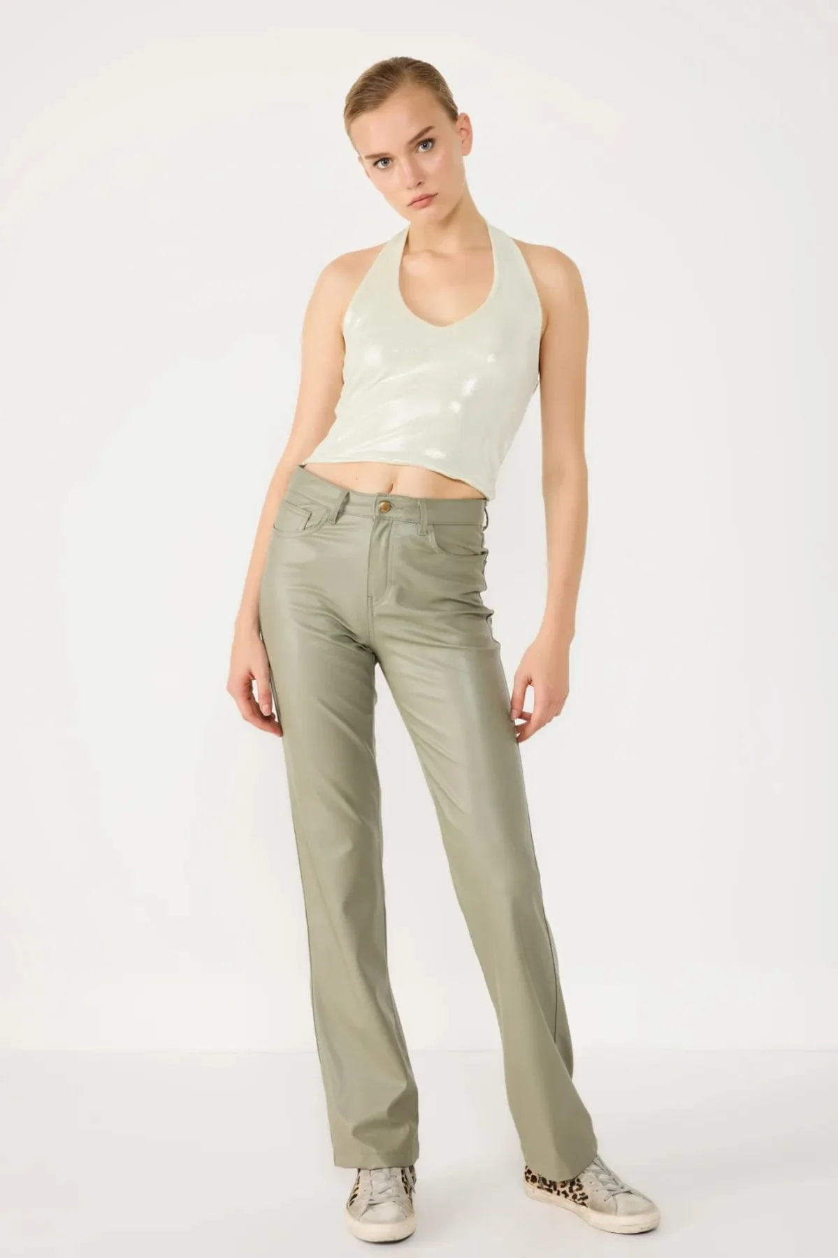Design: Gevoerde zoom/rand; Materiaal: Jersey; Halstype: Ronde hals; Motief: Effen; Soort bandjes: Haltermodel; Extra's: Glinsterend; Pasvorm: Slanke pasvorm; Armlengte: Mouwloos; Lengte: Korte pasvorm