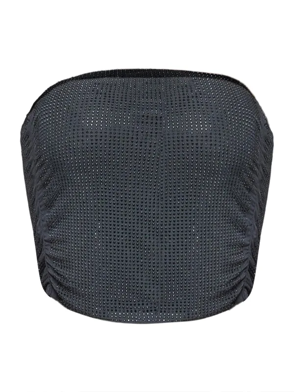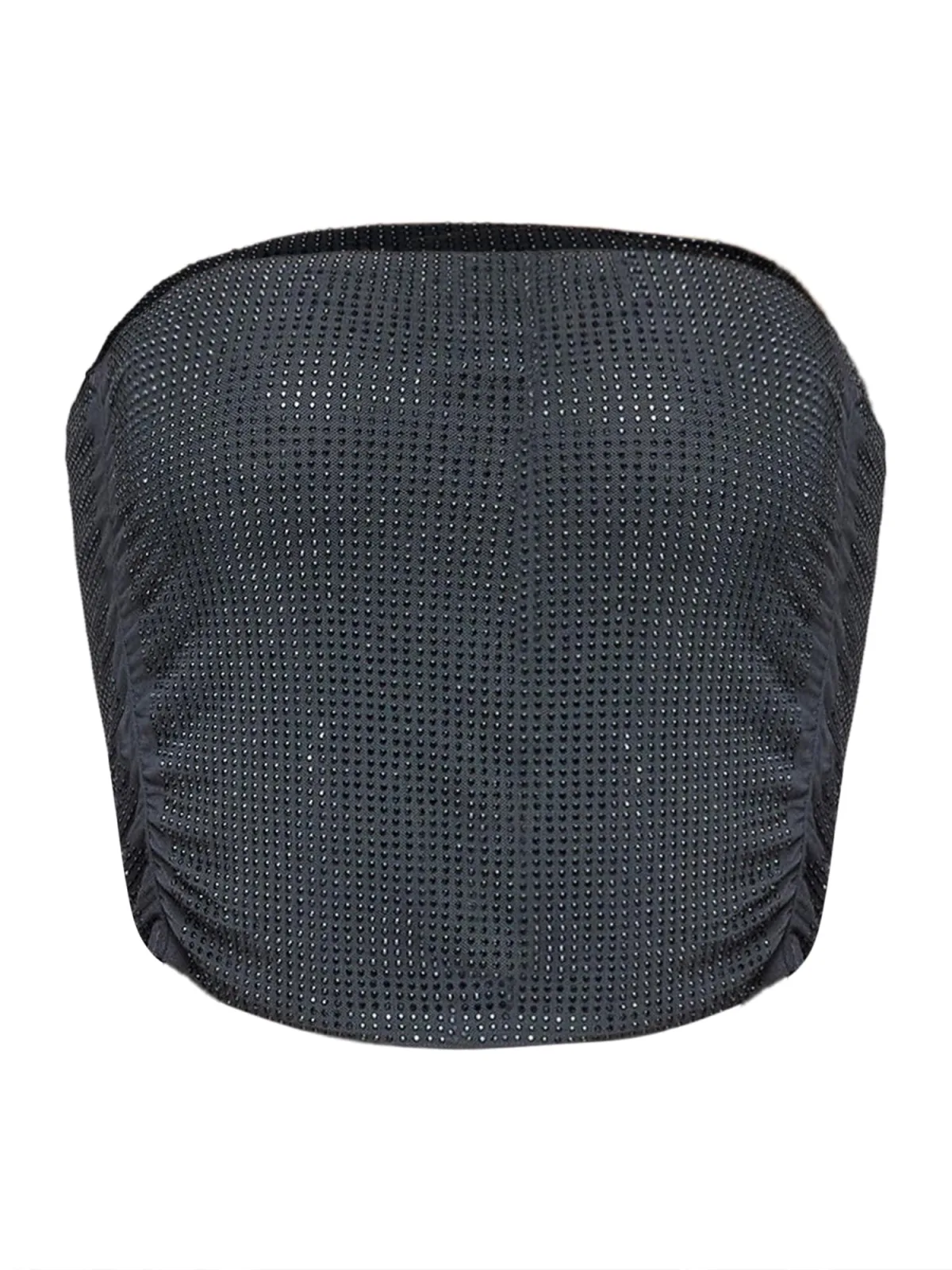 Design: Rechte zoom; Motief: Effen; Soort bandjes: Bandeau; Details: Sierstenen, Gedrapeerd; Extra's: Glitterend; Pasvorm: Slanke pasvorm; Armlengte: Mouwloos; Lengte: Korte pasvorm