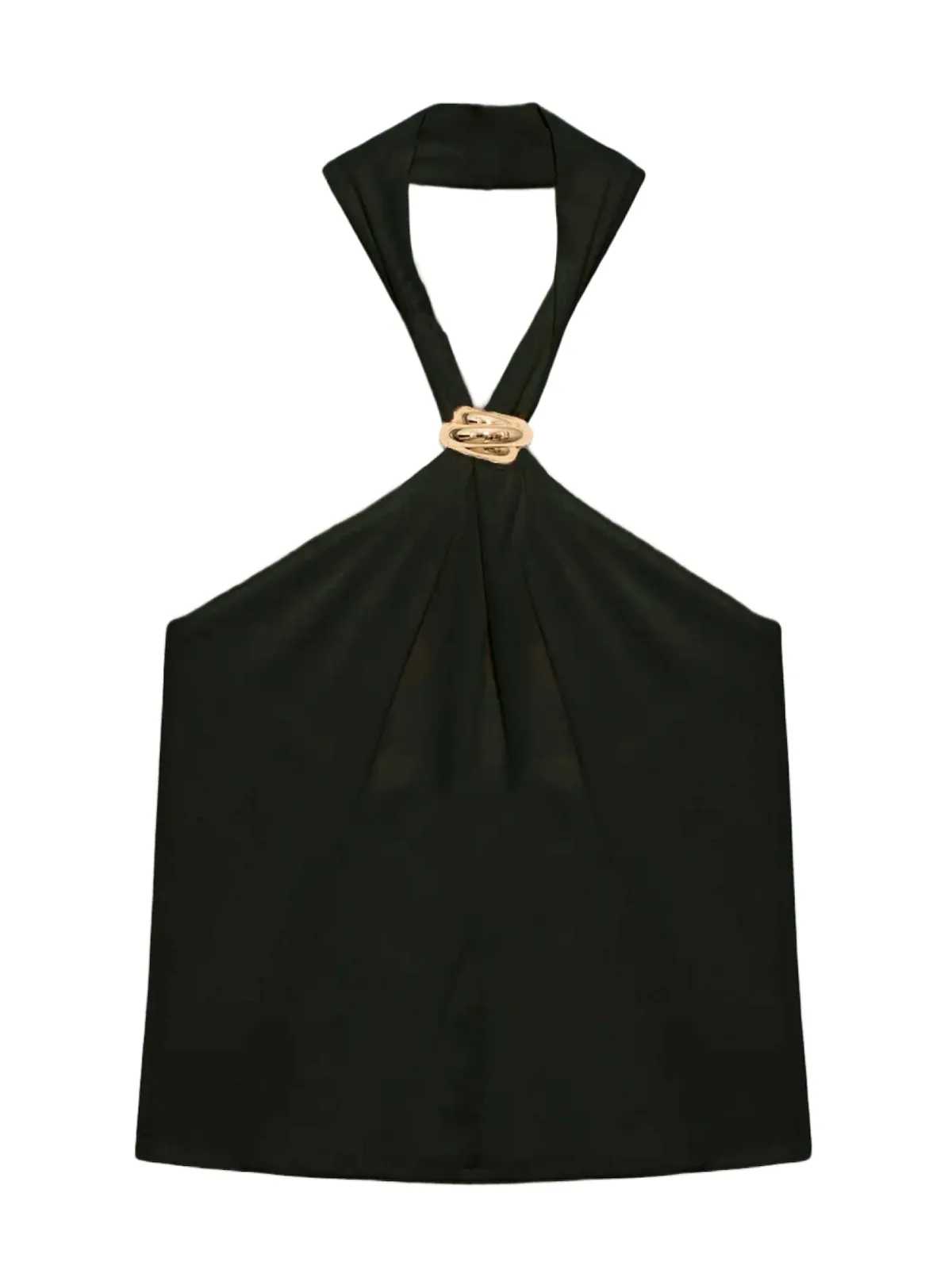Design: Gevoerde zoom/rand; Materiaal: Jersey; Motief: Effen; Soort bandjes: Haltermodel; Details: Gedrapeerd, Backless; Extra's: Op staal naden; Pasvorm: Aansluitende pasvorm; Armlengte: Mouwloos; Lengte: Normale lengte