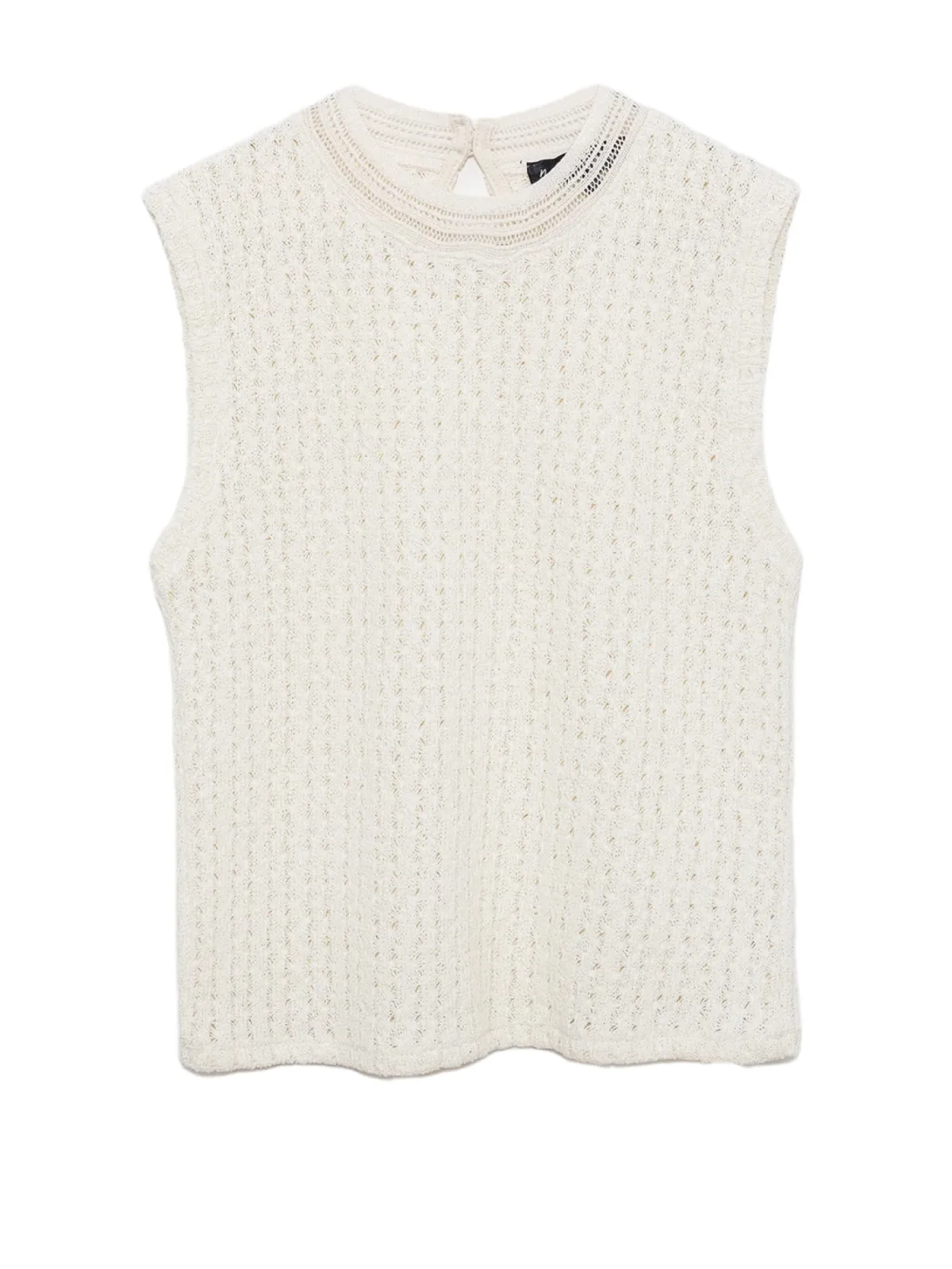 Blouse type: Blouseshirt; Design: Keyholesluiting; Type sluiting: Knoopsluiting; Materiaal: Knitwear; Halstype: Ronde hals; Motief: Effen; Soort bandjes: Brede bandjes; Details: Cut-outs, Mesh; Extra's: Voelt zacht aan; Pasvorm: Normale pasvorm; Armlengte: Mouwloos; Lengte: Normale lengte