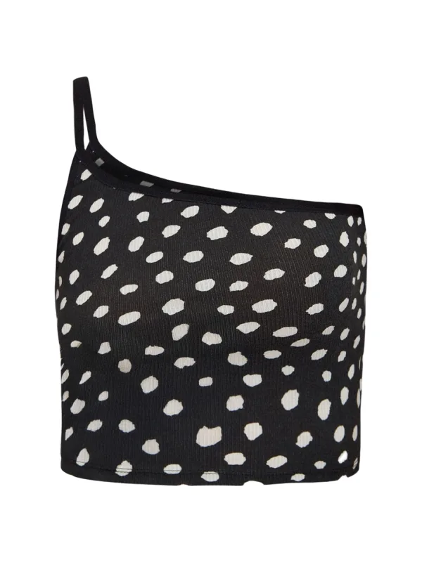 Design: Geribbeld gebreid; Materiaal: Jersey; Motief: Gestippeld; Soort bandjes: One-shoulder; Extra's: All-over patroon; Pasvorm: Slanke pasvorm; Armlengte: Mouwloos; Lengte: Korte pasvorm