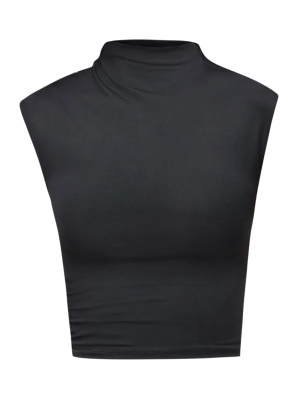 Design: Staande kraag; Materiaal: Jersey; Halstype: Opstaande kraag; Motief: Effen; Soort bandjes: Normale bandjes; Details: Cut-outs; Extra's: Op staal naden; Pasvorm: Aansluitende pasvorm; Armlengte: Mouwloos; Lengte: Korte pasvorm
