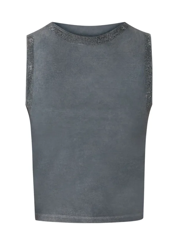 Design: Gevoerde zoom/rand; Materiaal: Jersey; Halstype: Ronde hals; Motief: Effen; Soort bandjes: Brede bandjes; Details: Sierstenen; Extra's: Lichte stof; Pasvorm: Slanke pasvorm; Armlengte: Mouwloos; Lengte: Korte pasvorm