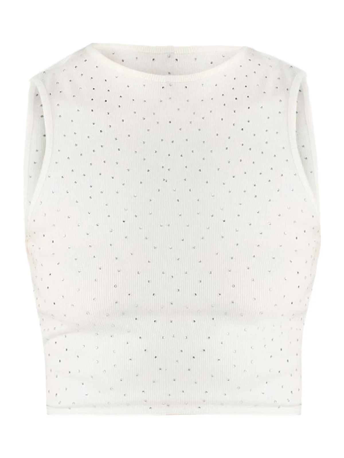 Materiaal: Jersey; Halstype: Ronde hals; Motief: Gestippeld; Soort bandjes: Brede bandjes; Details: Cut-outs, Sierstenen; Pasvorm: Slanke pasvorm; Armlengte: Mouwloos; Lengte: Korte pasvorm