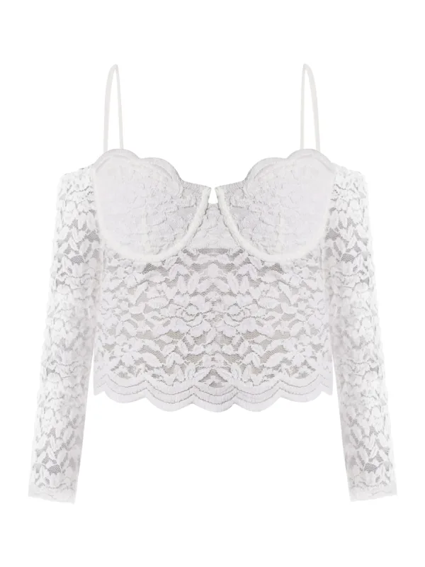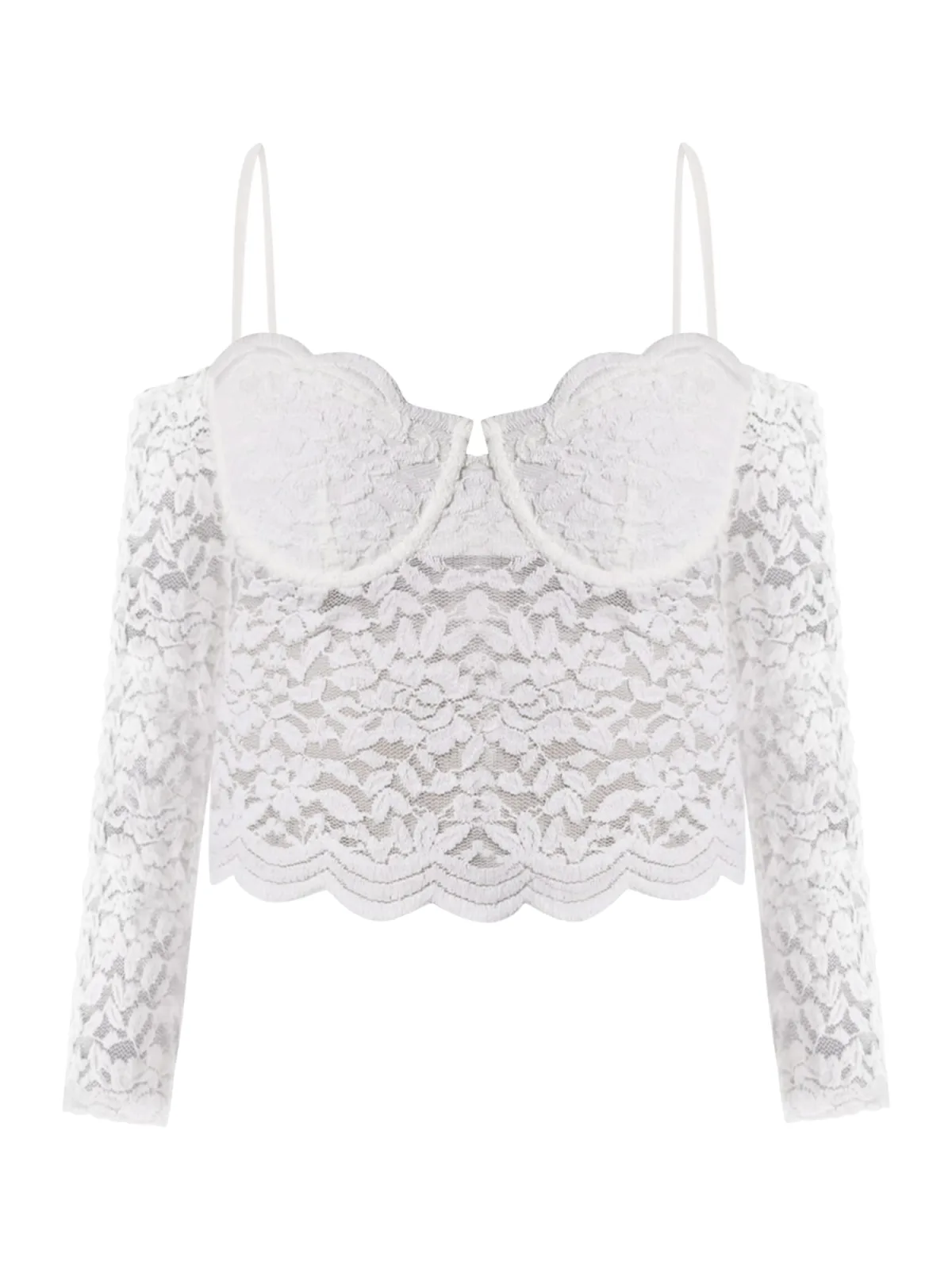 Design: Verstelbare riemen; Materiaal: Jersey; Soort bandjes: Spaghettibandjes; Details: Kant; Extra's: Op staal naden, Met textuur; Pasvorm: Normale pasvorm; Armlengte: Lange mouw; Lengte: Korte pasvorm