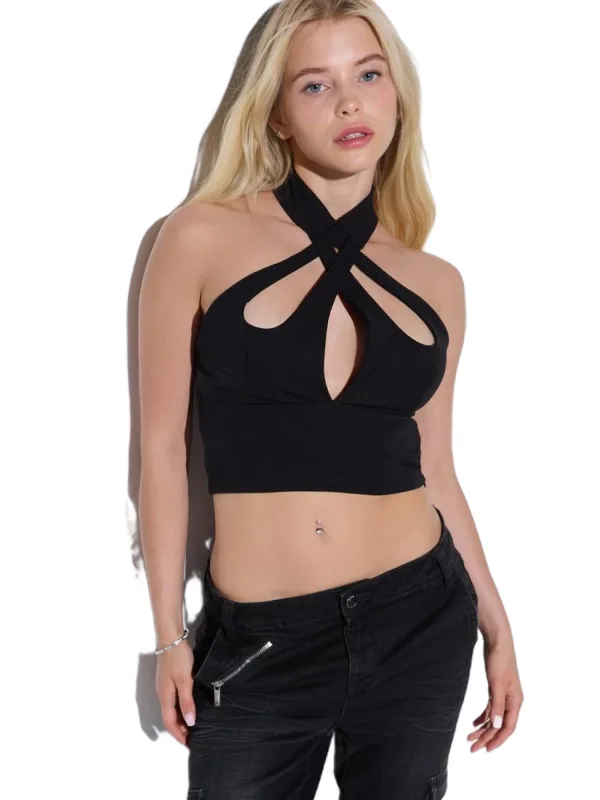 Design: Gevoerde zoom/rand, Diepe snit/decolleté; Materiaal: Jersey; Motief: Effen; Soort bandjes: Haltermodel; Details: Cut-outs; Extra's: Op staal naden; Pasvorm: Slanke pasvorm; Armlengte: Mouwloos; Lengte: Korte pasvorm