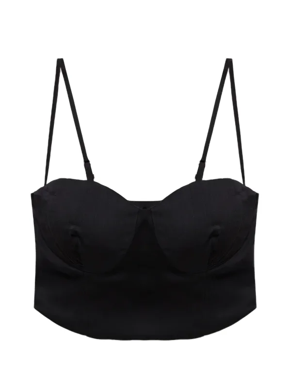 Cup soorten: Soft cup bh; Soort bandjes: Normale bandjes; Bh/bikini type: Bustier; Beugel: Zonder beugel; Design: Overige kragen; Materiaal: Satijn; Motief: Effen; Soort bandjes: Spaghettibandjes; Details: Gedrapeerd; Extra's: Op staal naden; Pasvorm: Aansluitende pasvorm; Armlengte: Mouwloos; Lengte: Korte pasvorm