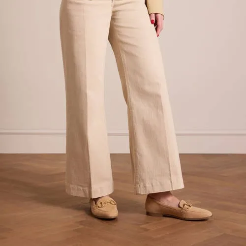 No Stress – Dames – Beige suède loafers met gouden chain –
