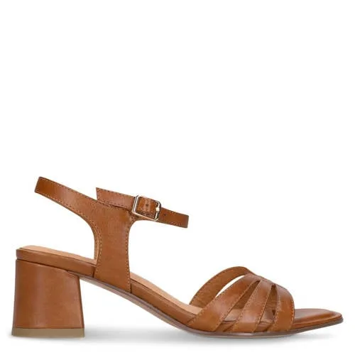 No Stress leren sandalettes blokhak cognac