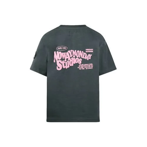 No Way Monday T-shirt met backprint antraciet