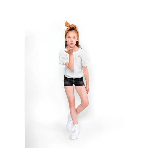 Dit T-shirt voor meisjes van No Way Monday is gemaakt van viscose. Het model heeft een boothals en korte mouwen.details van dit T-shirt:broderie details
