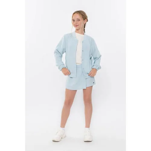 Voor frisse zomerdagen is deze lichtblauwe meisjes zomerjas van No Way Monday een praktische keuze voor in de kast. De kort vallende jas heeft een ronde hals en een rechte pasvorm, waardoor hij makkelijk over T-shirts, jurkjes en truien past. De effen lichtblauwe kleur geeft elke outfit een rustige, zomerse uitstraling.Handige details voor elke dag Korte jas met lange mouwen, ideaal voor zomer en tussenweer Effen lichtblauwe kleur die eenvoudig te combineren is Geweven stof met voering voor een comfortabel gevoel Drukknoopsluiting zodat je de jas snel open en dicht doet Praktische zakken voor aan de voorkant voor kleine spullen Geschikt voor peuter, kleuter, schoolkind en tiener dankzij de ruime maatboog Wasbaar op 30 graden en geschikt voor een regulier droogprogrammaLicht jasje voor droge, zomerse dagenDit jasje is gemaakt voor dagen waarop een T-shirt net iets te weinig is. Op weg naar school, een middag in het park of een zomerse wandeling, de gevoerde binnenkant zorgt voor net wat extra warmte zonder zwaar aan te voelen. Door de ronde hals oogt de jas netjes, wat hem ook passend maakt voor meer geklede momenten.No Way Monday voor dagelijkse kinderkledingNo Way Monday ontwerpt kinderkleding die past bij het dagelijkse leven van kinderen. De collecties zijn speels, herkenbaar en afgestemd op beweging en comfort. Met aandacht voor pasvorm en praktische details maakt No Way Monday kleding die gemakkelijk te dragen en te combineren is, elke dag opnieuw.Een licht, gevoerd jasje dat klaarstaat voor al die gewone, gezellige zomerdagen.