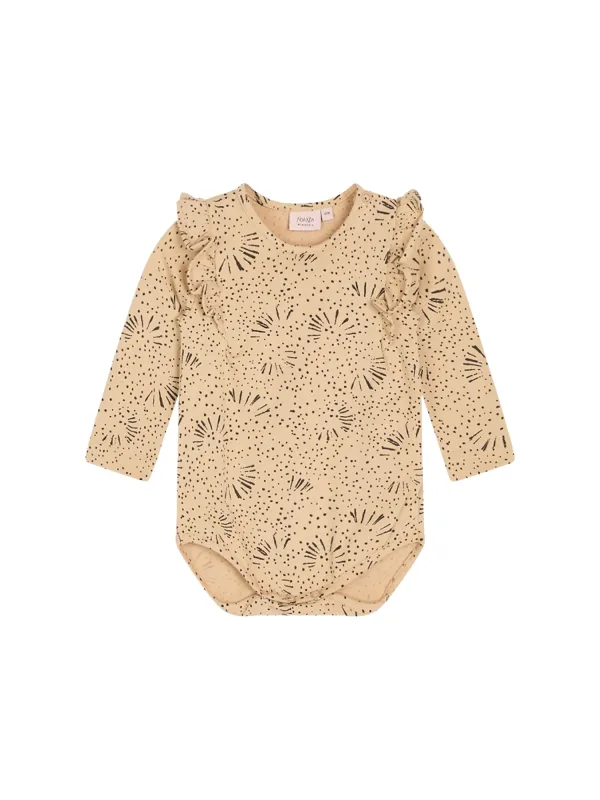 Specificaties: NOA NOA miniature Rompertje/body ‘Amelia’ beige / zwart