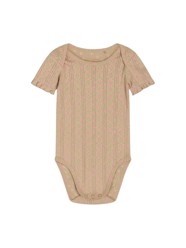 Specificaties: NOA NOA miniature Rompertje/body ‘Bonet’ donkerbeige / rosé