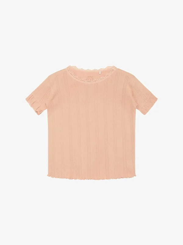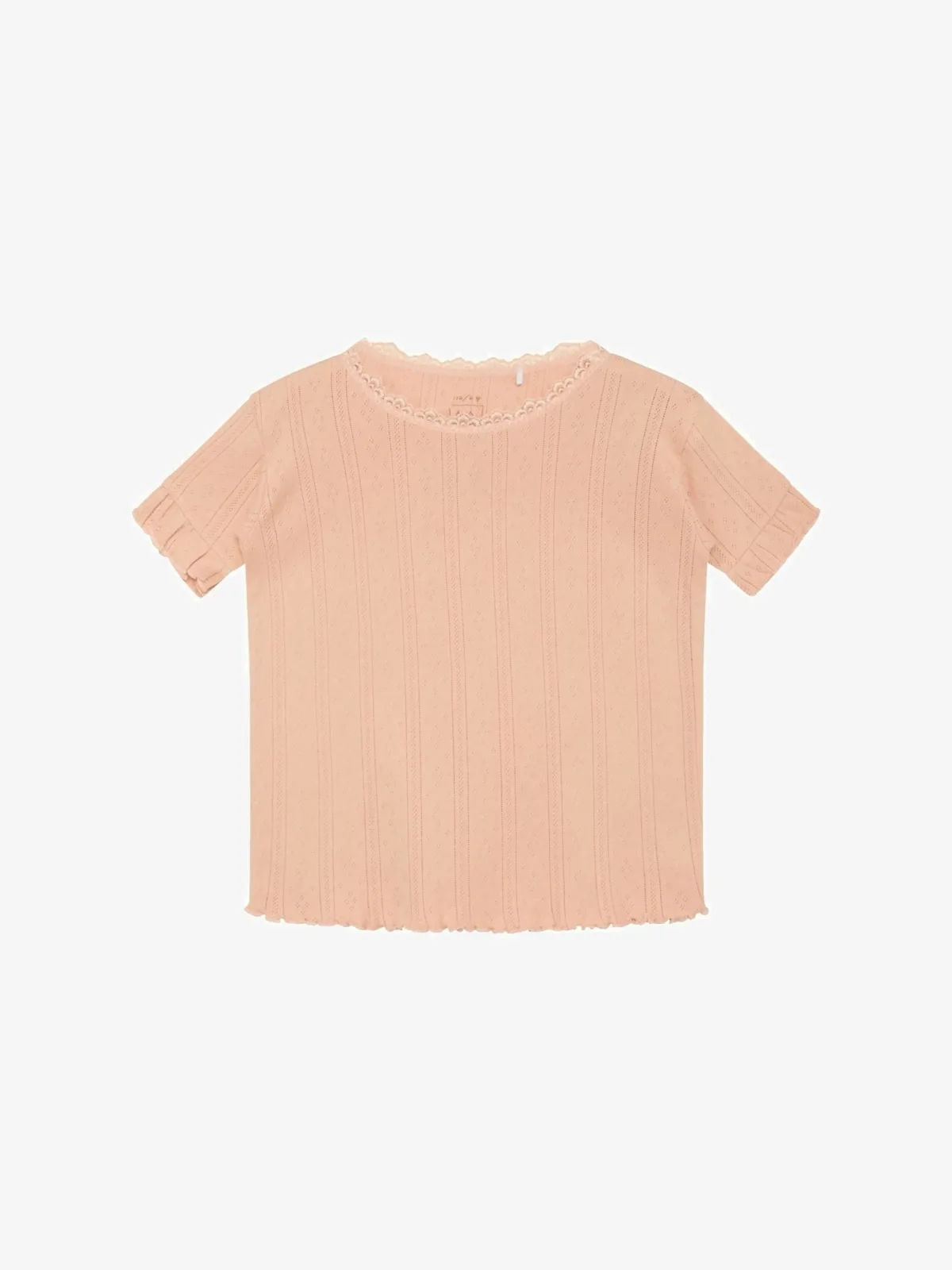 Design: Gerolde boord; Materiaal: Jersey; Halstype: Ronde hals; Motief: Effen; Details: Ruches, Kant, Mesh; Extra's: Op staal naden, Voelt zacht aan; Pasvorm: Normale pasvorm; Armlengte: Kwartmouw; Lengte: Normale lengte