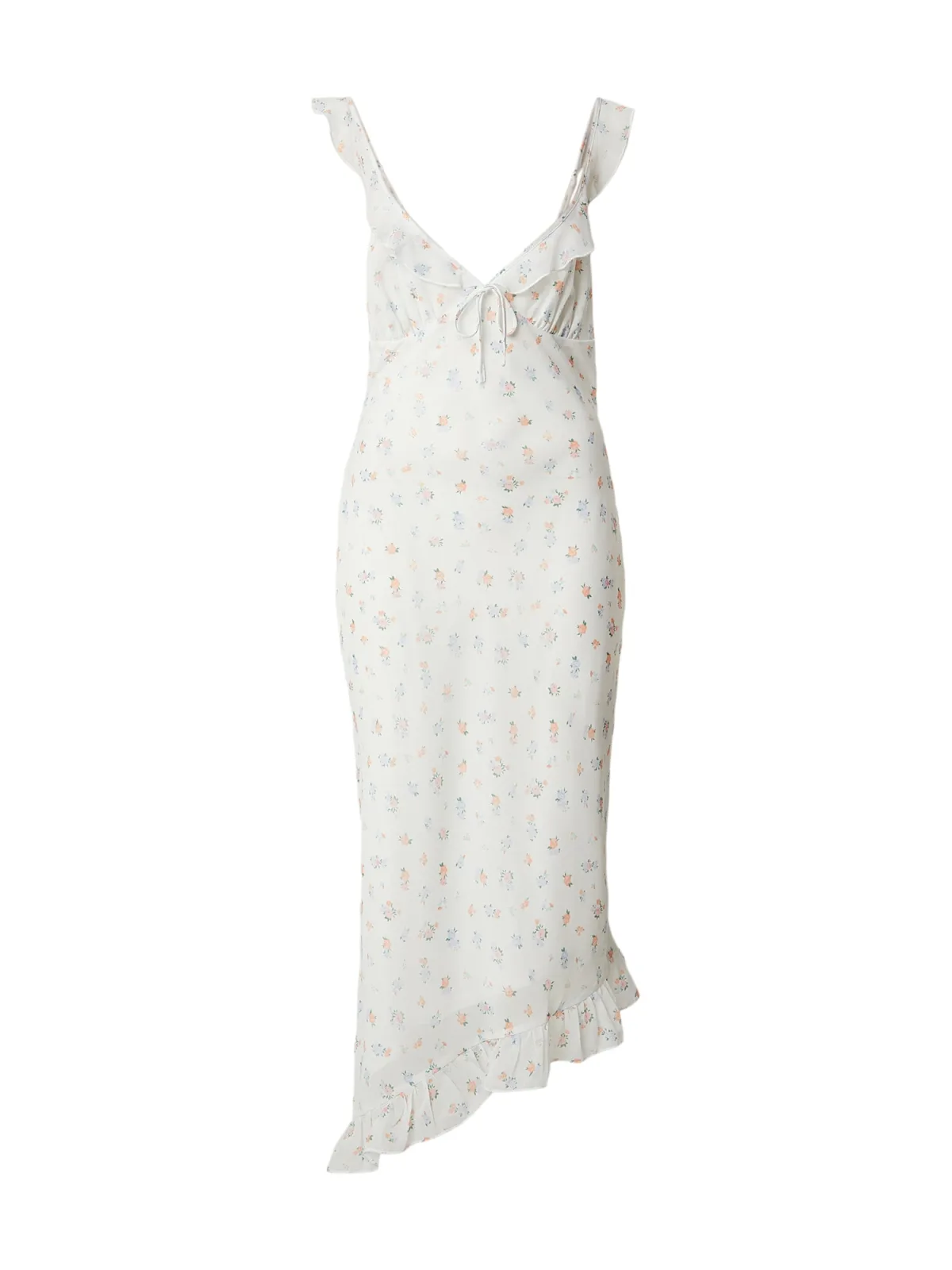 Design: Asymmetrische zoom; Materiaal: Gerecycled materiaal; Halstype: V-hals; Motief: Bloemenprint; Soort bandjes: Brede bandjes; Details: Ruches; Lengte: 3/4 lengte; Pasvorm: Normale pasvorm; Armlengte: Mouwloos