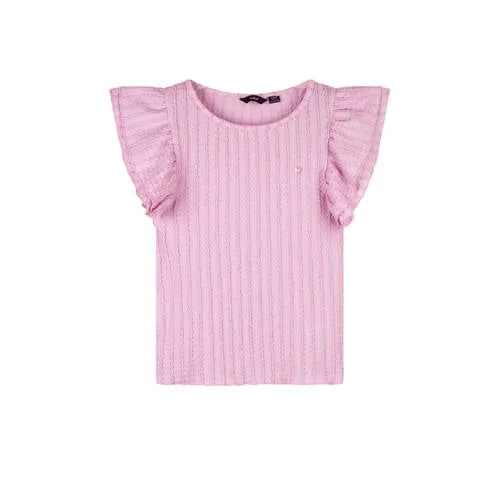 De 'NoBell' Kiss top voor meisjes heeft een ronde hals en korte mouwen. Gemaakt van polyester met een vleugje elastaan. De ruches en textuur geven deze top een speelse uitstraling. Geen zakken of sluiting aanwezig.