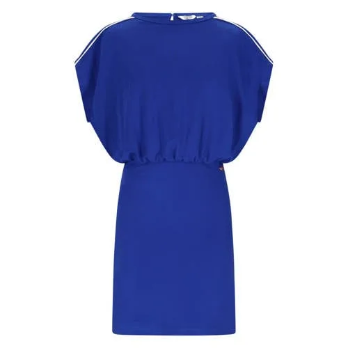 De kobaltblauwe NoBell’ meisjesjurk Milah is een fijne basic voor elke dag, met genoeg details om toch speciaal te voelen. De effen kleur zorgt voor een rustige uitstraling, terwijl de contrasterende bies het model subtiel accentueert. Door de midi lengte valt de jurk net over de knie, wat zowel comfortabel als praktisch is voor school, feestje of een dagje weg.Comfortabele pasvorm met speelse details Gemaakt van 86% katoen, 22% polyamide en drie procent elastaan, waardoor de stof zacht aanvoelt en licht meerekt. Korte vleermuismouwen geven extra bewegingsvrijheid bij schouders en armen. Ronde hals zonder sluiting, zodat de jurk makkelijk over het hoofd aangetrokken wordt. Effen kobaltblauwe kleur met contrast bies voor een rustige maar opvallende look. Midi jurk zonder zakken, wat zorgt voor een gestroomlijnd silhouet.Voor school, feestje en vrije tijdDe Milah jurk is geschikt voor veel momenten op de dag. In combinatie met sneakers ontstaat een sportieve look, met sandalen of laarsjes is de jurk meteen wat gekleder. Het elastische materiaal beweegt soepel mee, zodat rennen, spelen en fietsen geen probleem is.NoBell’ voor eigentijdse kidsNoBell’ ontwerpt kinderkleding met een moderne uitstraling en aandacht voor draagcomfort. De pasvormen zijn afgestemd op actieve kinderen, met stoffen die prettig aanvoelen en goed blijven, ook na vaak wassen en dragen.Een kobaltblauwe midi jurk waar je kind zich de hele dag vrij en zelfverzekerd in kan bewegen.
