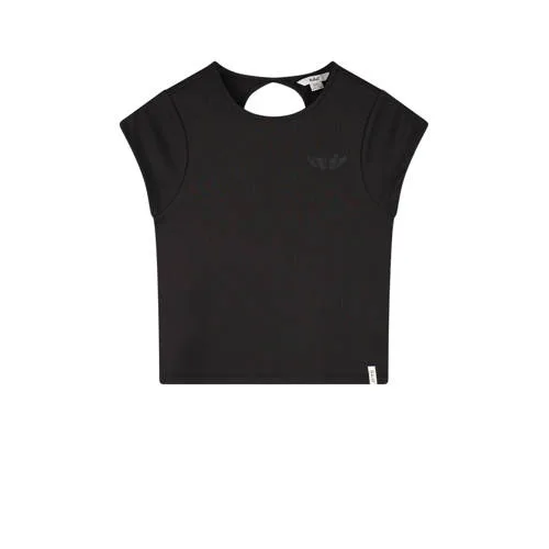 Dit T-shirt van NoBell voor meisjes is uitgevoerd in het zwart. Het heeft een ronde hals en korte mouwen, wat zorgt voor een casual look. Gemaakt van een mix van viscose en elastaan, met een open detail.