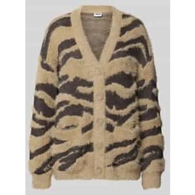 Gebreid damesjack van Noisy May;Recht model;Met imitatiebont ;Model 'FLYNN';V-hals;Knoopsluiting;Ruglengte bij maat S: 64 cm;Mouwlengte bij maat S: 52 cm