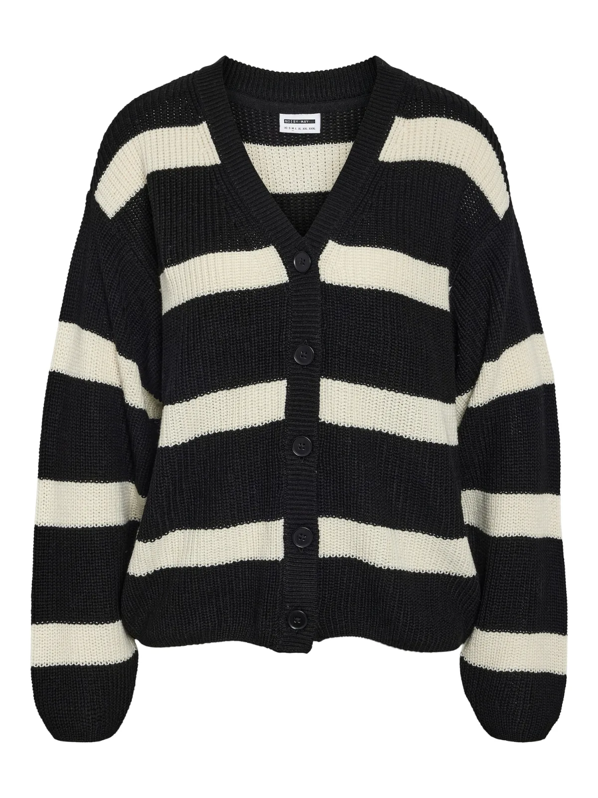 Design: Geribbelde kraag, Knop placket, Geribd ceintuurtje, Overcut schouder; Type sluiting: Knoopsluiting; Materiaal: Knitwear; Halstype: V-hals; Motief: Gestreept; Extra’s: All-over patroon, Fully fashioned; Pasvorm: Losse pasvorm; Armlengte: Lange mouw; Lengte: Normale lengte