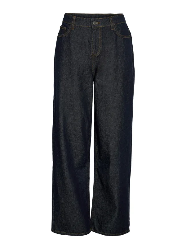 Design: Ritssluiting, 5-pocket-style; Type sluiting: Ritssluiting; Materiaal: Denim; Motief: Effen; Extra's: Contrasterende naden, Riemlussen; Wassing: Raw/unwashed; Lengte: Lang/maxi; Pasvorm: Loosefit; Taillehoogte: Mid waist