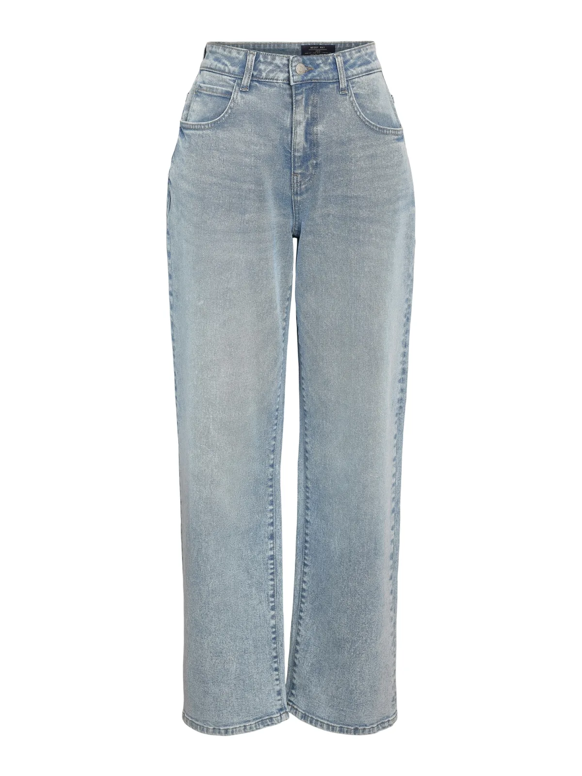 Design: Gevoerde zoom/rand, Ritssluiting, 5-pocket-style; Type sluiting: Ritssluiting; Materiaal: Denim; Motief: Effen; Extra's: Gewassen effect, Vaste grip, Riemlussen; Wassing: Light washed; Lengte: Lang/maxi; Pasvorm: Wide leg; Taillehoogte: High waist