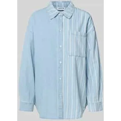 dames jeansblouse van Noisy May;puur katoen;Oversized fit;Model 'KATRI';overhemdkraag;knoopsluiting;borstzak;Oversized schouders;Sportmanchetten;Afgeronde zoom;ruglengte bij maat s: 72 cm;Mouwlengte bij maat S: 50 cm