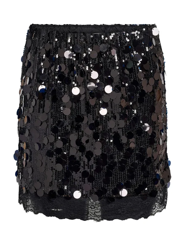 Design: Recht model, Geschulpte zoom; Motief: Effen; Rokvorm: Minirok; Details: Pailletten, Kant; Extra's: Applicaties, Op staal naden; Lengte: Kort/mini; Pasvorm: Normale pasvorm