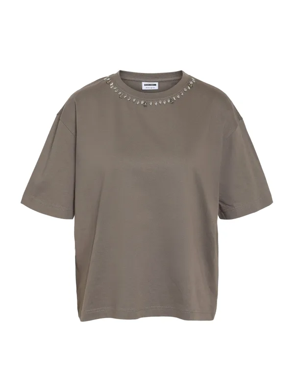 Design: Gevoerde zoom/rand, Rechte zoom, Overcut schouder; Materiaal: Jersey; Halstype: Ronde hals; Motief: Effen; Details: Sierstenen; Extra's: Op staal naden, Voelt zacht aan; Pasvorm: Losse pasvorm; Armlengte: Halve mouw; Lengte: Normale lengte