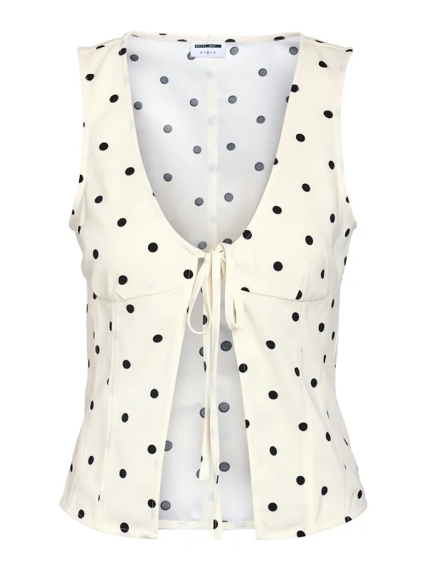 Design: Gevoerde zoom/rand, Deelnaden, Diepe snit/decolleté; Materiaal: Jersey; Halstype: V-hals; Motief: Gestippeld; Soort bandjes: Brede bandjes; Extra's: All-over patroon; Pasvorm: Normale pasvorm; Armlengte: Mouwloos; Lengte: Normale lengte