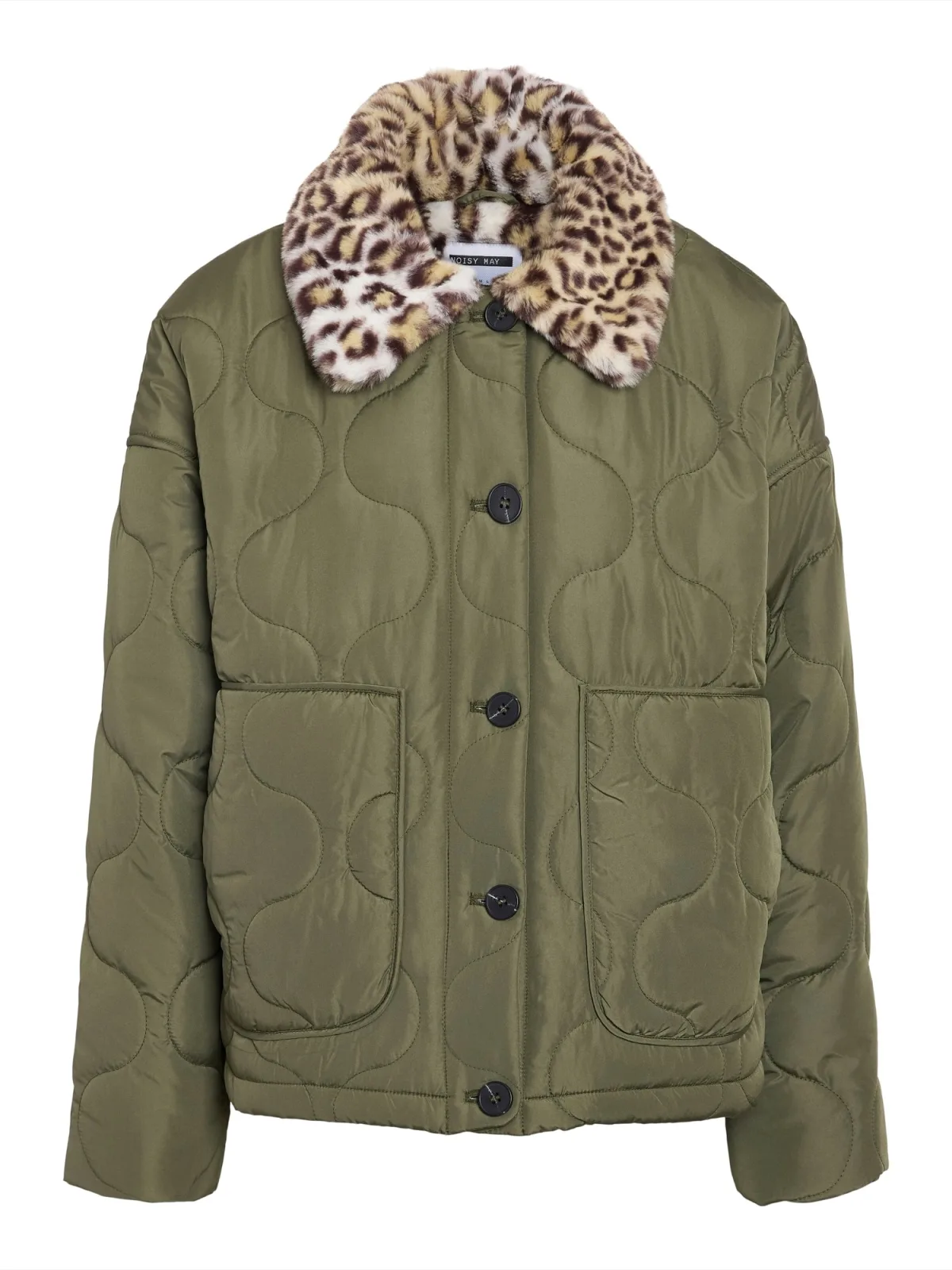Noisy may Tussenjas ‘NMHOLLY’ beige / chocoladebruin / olijfgroen / wit