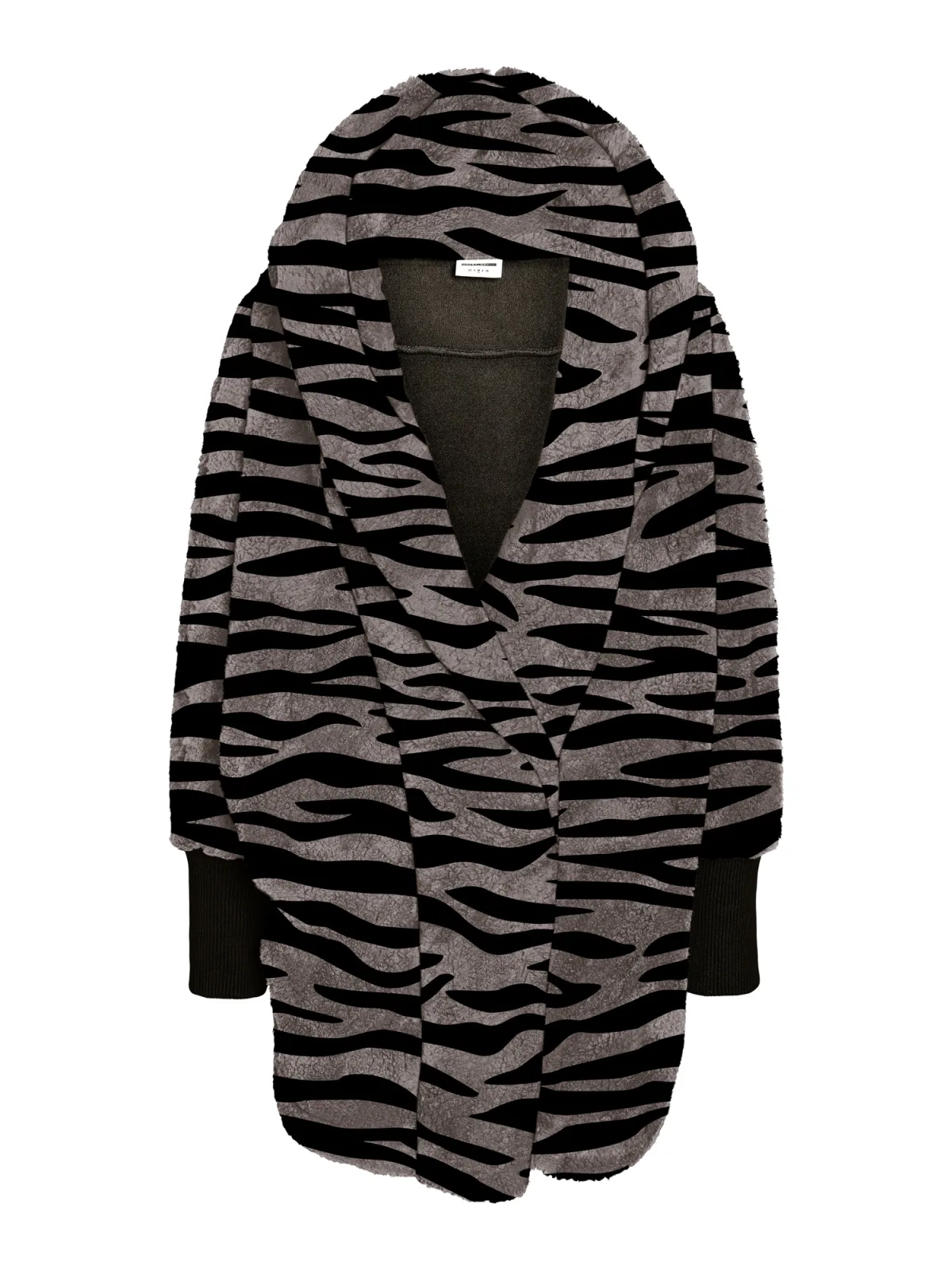 Design: Met capuchon, Geribd ceintuurtje, Verborgen knop placket; Type sluiting: Drukknoop; Voering: Niet gevoerd; Materiaal: Gerecycled materiaal; Motief: Dierenprint; Extra's: All-over patroon, Voelt zacht aan; Pasvorm: Losse pasvorm; Lengte: Korte pasvorm