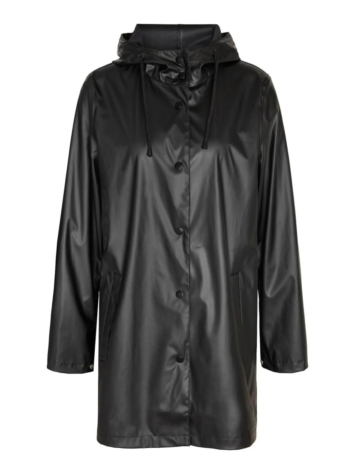 Type mantel: Regenjas; Design: Gevoerde zoom/rand, Rechte zoom, Capuchon met trekkoord, Zakken aan de zijkant; Type sluiting: Drukknoop; Type jas: Regenjas; Voering: Niet gevoerd; Materiaal: Gerecycled materiaal; Motief: Effen; Extra's: Op staal naden, Gladde stof, Metalen oogjes; Pasvorm: Losse pasvorm; Lengte: Normale lengte