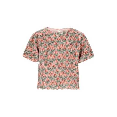 Deze speelse NONO meisjes top Tish is een fijne basis voor zonnige dagen en feestelijke momenten. De top heeft korte mouwen, een ronde hals en een subtiele textuur die meteen in het oog springt. De all over print zorgt voor een levendige uitstraling, terwijl de rechte mouwen en het licht elastische materiaal zorgen voor bewegingsvrijheid tijdens spelen, rennen en dansen.Kenmerken die elke dag mee kunnen Gemaakt van 95% polyester en 5% elastaan voor een soepele pasvorm Korte, rechte mouwen die luchtig aanvoelen All over print voor een vrolijke en opvallende look Ronde hals die comfortabel aansluit Knoopsluiting waardoor de top makkelijk aan en uit gaat Geen zakken voor een rustige, mooie belijning Fijne textuur in de stof voor extra detailIdeaal voor school, feestjes en vakantieDeze top past net zo goed op een korte broek als op een rokje of een luchtige broek. Handig voor schooldagen, een kinderfeestje of een dagje weg. Door het lichte, elastische materiaal blijft de top prettig zitten, ook als er veel bewogen wordt.NONO, speelse mode met oog voor detailNONO staat bekend om kinderkleding die vrolijk, draagbaar en doordacht is. Prints, kleuren en details worden zorgvuldig gecombineerd zodat ieder item opvalt, maar wel makkelijk te combineren blijft. Met deze meisjes top Tish haal je een kledingstuk in huis dat aansluit bij het actieve leven van kinderen en er tegelijk verzorgd uitziet.Een top om keer op keer met plezier uit de kast te pakken.