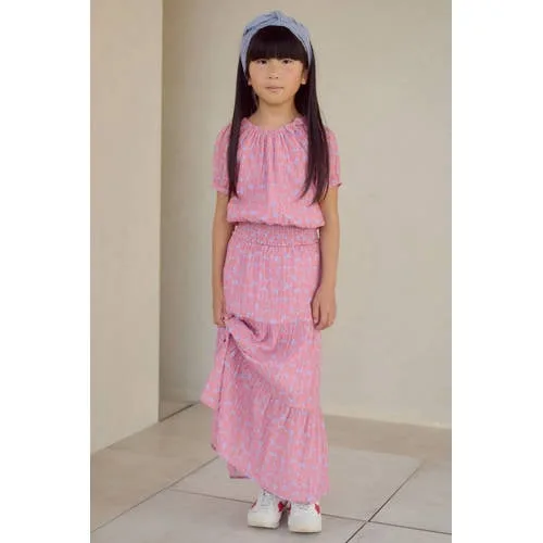 De paarse en oranje tinten van deze NONO meisjes maxi rok Nael geven elke dag meteen een vrolijke uitstraling. De rok valt lang en zwierig, met een all over print die direct opvalt. Dankzij de elastische tailleband sluit de rok soepel aan en kan je kind zich vrij bewegen, of het nu gaat om school, een feestje of een dagje weg.Zwierige rok met speelse print Lange maxi rok voor een elegante, zwierige look Paarse en oranje kleurcombinatie met all over print Elastische tailleband voor eenvoudig aan- en uittrekken Zonder voering, waardoor de rok licht en soepel valt Past binnen de preppy collectie, ideaal voor een verzorgde, modieuze stijl Geschikt voor peuter, kleuter, schoolkind en tiener Wasbaar op 30 graden en lauw strijkbaarVoor vakantiegevoel en schooldagenDe rok heeft een lichte, soepelvallende stof die mooi meebeweegt tijdens het rennen, spelen en dansen. Perfect voor zonnige vakantiedagen met sandalen, maar ook heel geschikt voor school met sneakers en een basic T-shirt of trui. De elastische taille zorgt dat de rok comfortabel blijft zitten, de hele dag door.NONO: speelse mode voor meisjesNONO ontwerpt kinderkleding met oog voor detail, kleur en draaggemak. De collecties combineren speelse prints met een doordachte pasvorm, zodat meisjes zich vrij kunnen bewegen en toch verzorgd voor de dag komen. Met deze rok kies je voor een stijlvol ontwerp dat aansluit bij de dagelijkse praktijk van drukke, actieve kinderen.Een vrolijke maxi rok die elke outfit in één keer afmaakt.
