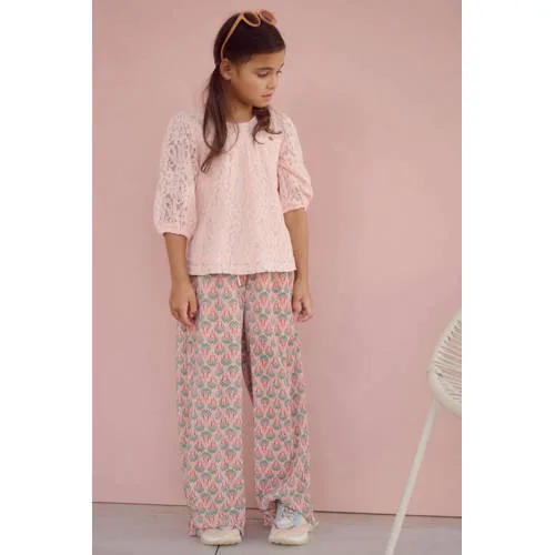 Voor speelse dagen en ontspannen momenten is de NONO meisjesbroek Sun een fijne basis in de kledingkast. De lange broek heeft een vrolijke all over print in groen en roze, die direct opvalt zonder te druk te worden. Door de regular fit en de zachte, soepele stof voelt de broek comfortabel aan, of je kind nu rent, speelt of rustig op de bank zit.Comfort en details voor elke dag Casual lange broek met regular fit, ideaal voor dagelijks gebruik Elastische tailleband met koord voor een fijne, aanpasbare pasvorm Gemaakt van 95 procent polyester en vijf procent elastaan voor een zachte stof met lichte stretch All over print in groen en roze voor een speelse, frisse uitstraling Geen zakken voor een glad silhouet dat mooi recht valt Subtiele textuur in de stof voor extra karakterGemakkelijk te combineren outfitDeze Sun broek is een handig item voor allerlei momenten. Combineer met een eenvoudig T-shirt of top om de print centraal te zetten, of met een hoodie voor een meer sportieve look. De elastische taille maakt zelf aan- en uittrekken eenvoudig, wat handig is op schooldagen en tijdens het spelen.NONO: speelse mode voor meidenNONO ontwerpt kleding speciaal voor meisjes die houden van kleur, comfort en een eigen stijl. De collectie wordt gemaakt met aandacht voor pasvorm en draaggemak, zodat kinderen vrij kunnen bewegen en zich prettig voelen in wat zij dragen. Met NONO kies je voor doordachte kindermode met een vrolijke en modieuze uitstraling.Een comfortabele, kleurrijke broek waar je kind zich de hele dag vrij in kan bewegen.