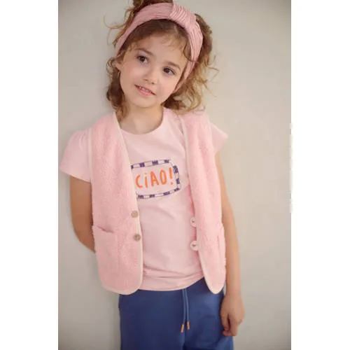 Speels, zacht en makkelijk te combineren, dit lichtroze NONO meisjes T-shirt Kiss is een praktische basic met een vrolijke twist. Het T-shirt heeft een ronde hals en korte pofmouwen die zorgen voor een girly uitstraling. De printopdruk aan de voorkant geeft elke outfit wat extra karakter, zonder druk te ogen. De katoenmix met elastaan voelt soepel aan en beweegt makkelijk mee, passend bij schooldagen, speelafspraakjes en vrije tijd.Lichtroze T-shirt met speelse details Lichtroze kleur die goed te combineren is met jeans, rokjes en shorts Korte pofmouwen voor een speelse, eigentijdse look Ronde hals die comfortabel aansluit bij de nek Printopdruk aan de voorkant voor een vrolijk detail Gemaakt van 95% katoen en 5% elastaan voor een zachte stof met lichte stretch Geen zakken, waardoor het T-shirt rustig oogt en makkelijk onder een vest of jasje past Verpakking met één stuk, passend als vast item in de kastGeschikt voor elke dagDit T-shirt leent zich goed voor dagelijks gebruik. De comfortabele stof en korte mouwen maken het geschikt voor warmere dagen en in combinatie met een vest of jasje kan het ook in andere seizoenen worden gedragen. Zo blijft het T-shirt het hele jaar door bruikbaar.NONO: aandacht voor detailNONO ontwerpt kinderkleding met oog voor pasvorm, kleur en detail. De collecties zijn gemaakt zodat meiden zich vrij kunnen bewegen en verzorgd gekleed zijn. Dit T-shirt sluit daar mooi op aan en combineert draagcomfort met een herkenbare stijl.Een licht en speels T-shirt dat makkelijk een vaste plek krijgt in de kledingkast.