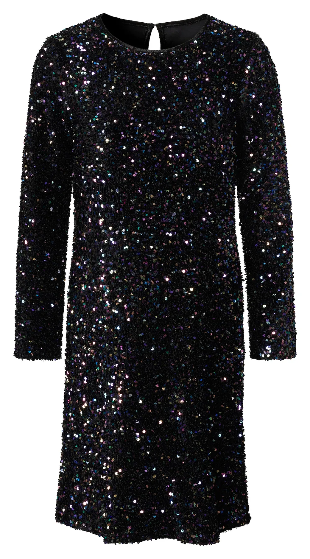 Design: Ingelegde zoom/rand; Type sluiting: Knoopsluiting; Materiaal: Gerecycled materiaal; Halstype: Ronde hals; Motief: Effen; Details: Pailletten; Extra's: Glitterend; Lengte: Knielengte; Pasvorm: Normale pasvorm; Armlengte: Lange mouw