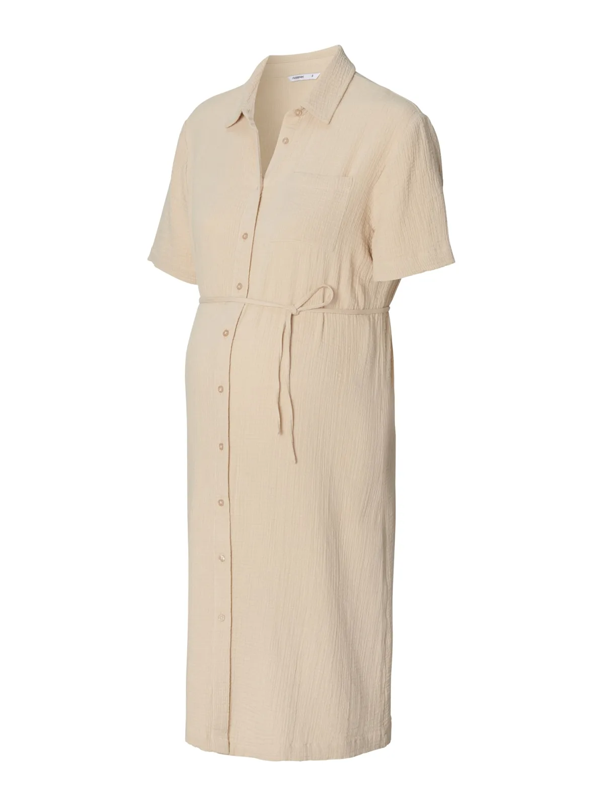 Design: Gevoerde zoom/rand, Placket, Met band/snoer, Borstzak; Type sluiting: Knoopsluiting; Materiaal: Mousseline; Motief: Effen; Kraag: Kentkraag; Extra's: Op staal naden, Voelt zacht aan; Borstvoedingsfunctie: Zonder borstvoedingsfunctie; Lengte: Knielengte; Snit: Getailleerd; Pasvorm: Normale pasvorm; Armlengte: Kwartmouw