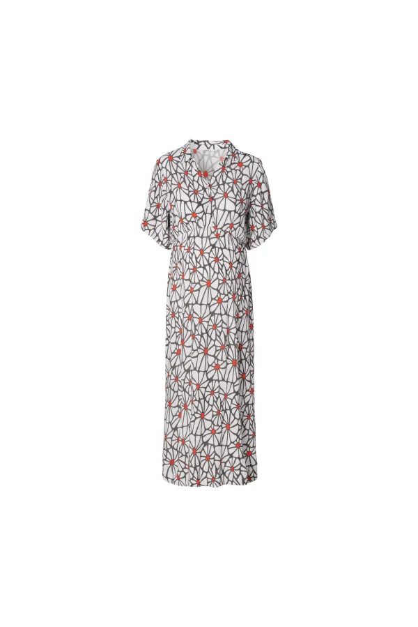 Design: Gevoerde zoom/rand, Getailleerd model; Type sluiting: Knoopsluiting; Materiaal: Jersey; Extra's: All-over patroon; Lengte: Lang/maxi; Pasvorm: Normale pasvorm; Armlengte: Halve mouw