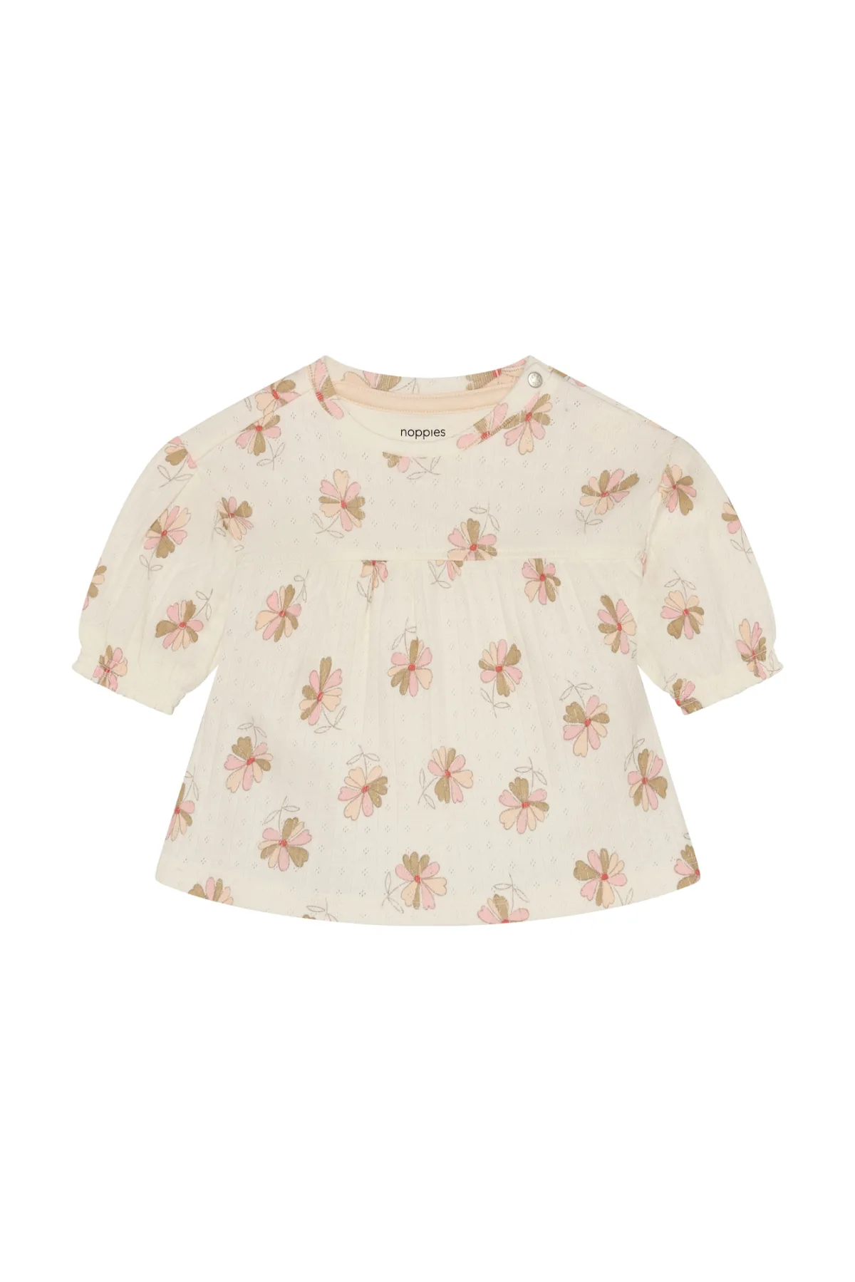 Design: Gevoerde zoom/rand, Flare, Nektape; Type sluiting: Drukknoop; Materiaal: Katoen; Halstype: Ronde hals; Motief: Bloemenprint; Details: Mesh, Plissé; Extra's: All-over patroon, Voelt zacht aan; Lengte: Knielengte; Pasvorm: Losse pasvorm; Armlengte: Lange mouw