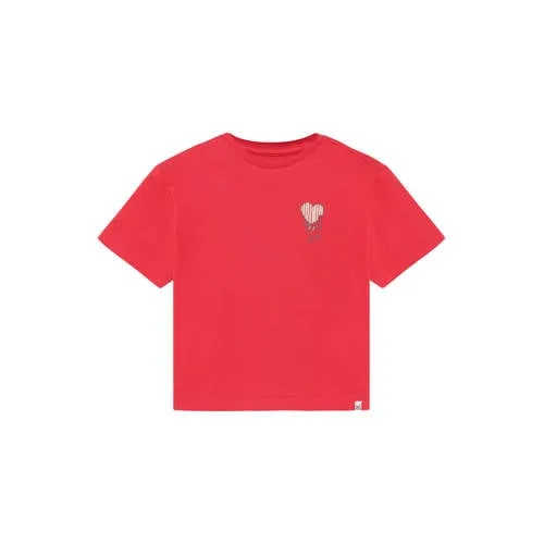 Een speels basisitem voor elke dag, dat is dit Noppies T-shirt voor meisjes uit de Noppies kids collectie. Het rode T-shirt valt op door de backprint op de rug en is makkelijk te combineren met een jeans, een short of een rokje. De rechte pasvorm en de korte mouwen geven veel bewegingsvrijheid, ideaal voor school, thuis of een dagje weg.Praktische details voor dagelijks dragen Gemaakt van 100% katoen, voelt zacht aan op de huid en is prettig ademend Korte mouwen en rechte pasvorm, fijn voor de warmere dagen of onder een vest Ronde hals die comfortabel aansluit zonder strak te zitten Backprint op de rug voor een speels detail aan de achterzijde Rode kleur die goed past bij basics in denim, wit, zwart en neutrale tinten Eén stuk in de verpakking, handig als favoriet T-shirt in de kastComfortabel T-shirt voor actieve meisjesDit T-shirt is ontworpen voor actief gebruik. De soepele katoenen stof beweegt makkelijk mee, waardoor rennen, klimmen en spelen vanzelf gaat. Door de eenvoudige voorkant en de print op de rug ziet het er rustig uit van voren en verrassend van achteren.Noppies kids: vertrouwd en kindvriendelijkNoppies is een bekend merk dat zich richt op kinderkleding met aandacht voor pasvorm en draaggemak. De Noppies kids lijn sluit aan bij wat kinderen fijn vinden om te dragen en wat ouders graag in de kast hebben hangen: kleding die er leuk uitziet en tegen een stootje kan.Een veelzijdig T-shirt dat snel uit de kast gepakt wordt voor alledaagse momenten.
