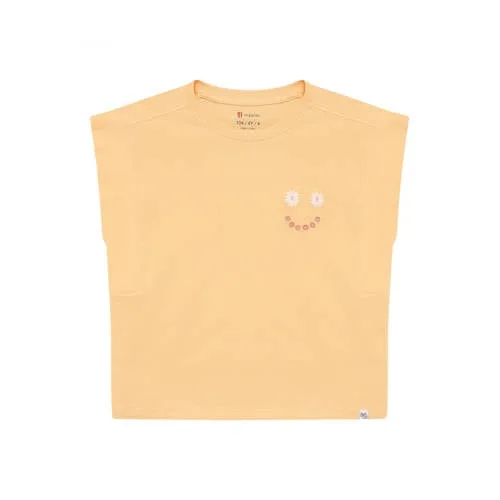 Fris, luchtig en klaar voor elke speelse dag, dit Noppies meisjes T-shirt lichtoranje is een fijne basic met een vrolijke print. De lichtoranje kleur geeft direct een zomerse uitstraling, terwijl de mouwloze pasvorm veel bewegingsvrijheid biedt. Gemaakt van 100% katoen voelt het T-shirt zacht aan op de huid en is het geschikt voor dagelijks gebruik, van school tot speeltuin.Licht en comfortabel voor drukke dagen Mouwloos model, ideaal voor warme dagen of om te layeren met een vest Gemaakt van 100% katoen, dat soepel meebeweegt en prettig draagt Lichtoranje kleur met printopdruk voor een speelse, kinderlijke look Ronde hals die makkelijk over het hoofd gaat Eén T-shirt in de verpakking, handig als favoriete basic in de kastPraktisch in het dagelijks levenDit T-shirt past net zo makkelijk op een korte broek als op een rok of legging. Door het mouwloze design is het ideaal op warme dagen en in de koudere maanden draag je het eenvoudig onder een vest of trui. Zo blijft het T-shirt het hele jaar door inzetbaar.Noppies kids: ontworpen met kinderen in gedachtenNoppies kids staat bekend om kinderkleding die rekening houdt met bewegingsvrijheid en het actieve leven van kinderen. De materialen zijn gekozen voor dagelijks gebruik en de pasvorm is afgestemd op spel, bewegen en groeien. Zo kies je voor kleding waar je kind zich vrij in kan voelen.Een lichte, speelse basic die moeiteloos meegaat in het ritme van alledaagse avonturen.